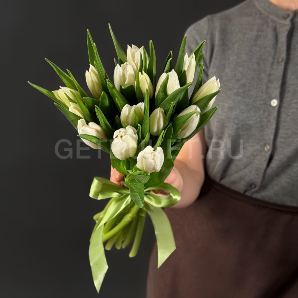 Букет из 15 белых тюльпанов